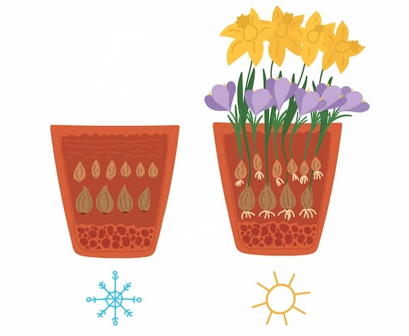 Kasvu voi alkaa keväällä hyvinkin eri aikoina. Siihen vaikuttavat istutusajankohta, sipulien lajityypilliset ominaisuudet sekä talven ja kevään olosuhteet. Lasitetulla parvekkeella olosuhteet ovat hyvin erilaiset kuin vaikkapa kylmäkellarissa.