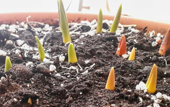 - Kun ensimmäiset piipat näkyvät, siirrä ruukku valoon ja kastele maltillisesti. Jos pakkanen uudelleen paukkuu, laita vällyt ruukun ympärille uudestaan.