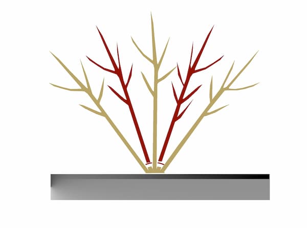 Valitse leikkauskohdat sen mukaan, mistä haaroittumista toivotaan. Leikkaa ulospäin osoittavan silmun yläpuolelta ja mielellään aiemmat haaroittumiskohdat hyödyntäen.